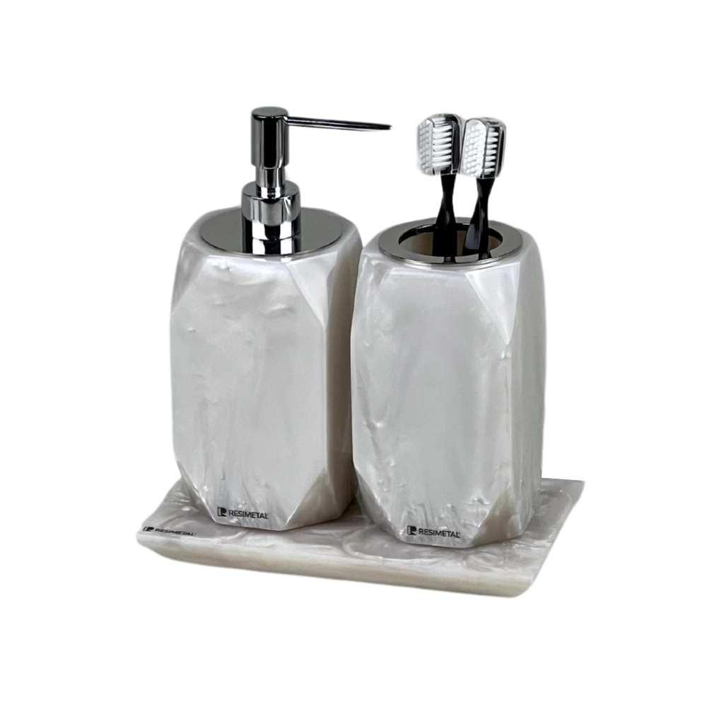 Conjunto para suíte, a combinação perfeita de elegância e funcionalidade para o seu banheiro. Composto por um dispenser para sabonete líquido e um porta escovas, ambos com acabamento sofisticado. A bandeja junto ao kit mantém tudo organizado, proporcionando praticidade e estilo.