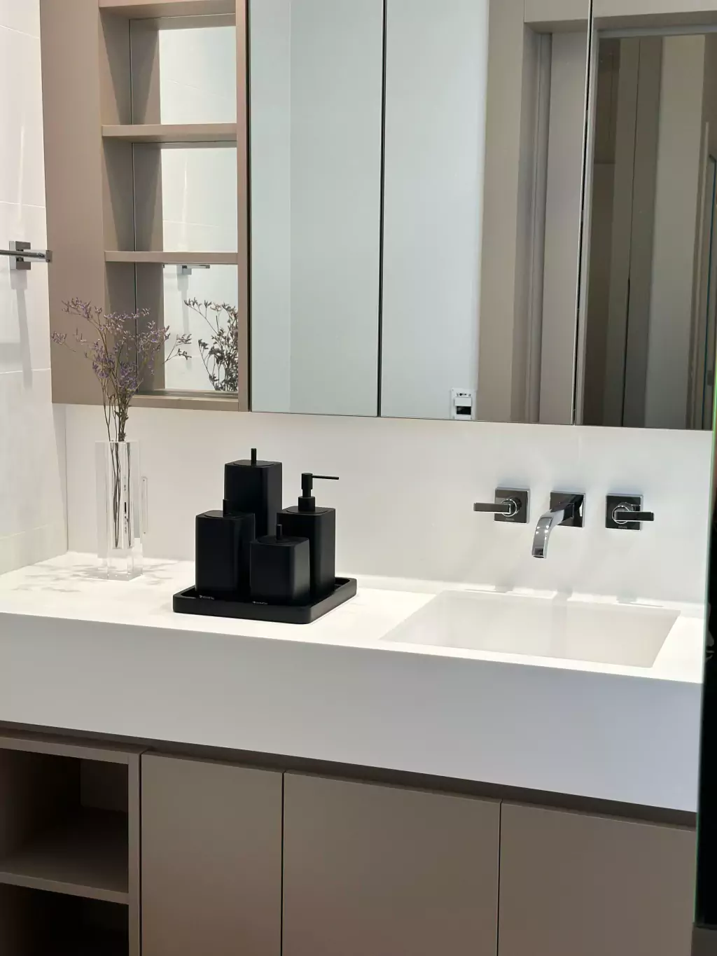 Confira nossa linha de bandejas e lixeiras em resina de poliéster, e monte uma composição completa para seu banheiro. Consulte nosso atendimento personalizado para conhecer mais cores e acabamentos de metais dos produtos.