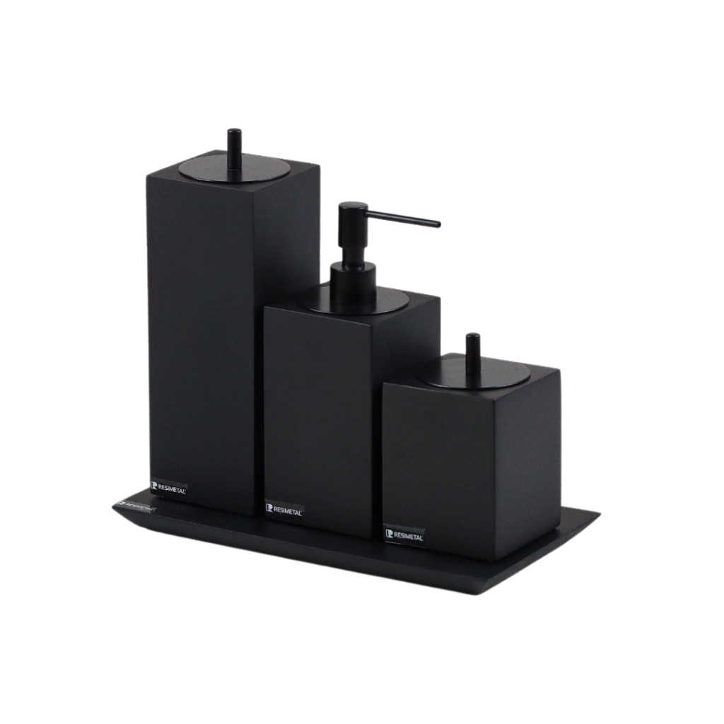 Nosso conjunto suíte traz a praticidade que você precisa em seu banheiro, sem abrir mão do estilo e da sofisticação. Com uma saboneteira, um porta escova e um porta cotonete, você terá todos os itens essenciais organizados e sempre à mão. Adicione um toque de classe ao seu banheiro com nosso conjunto suíte.