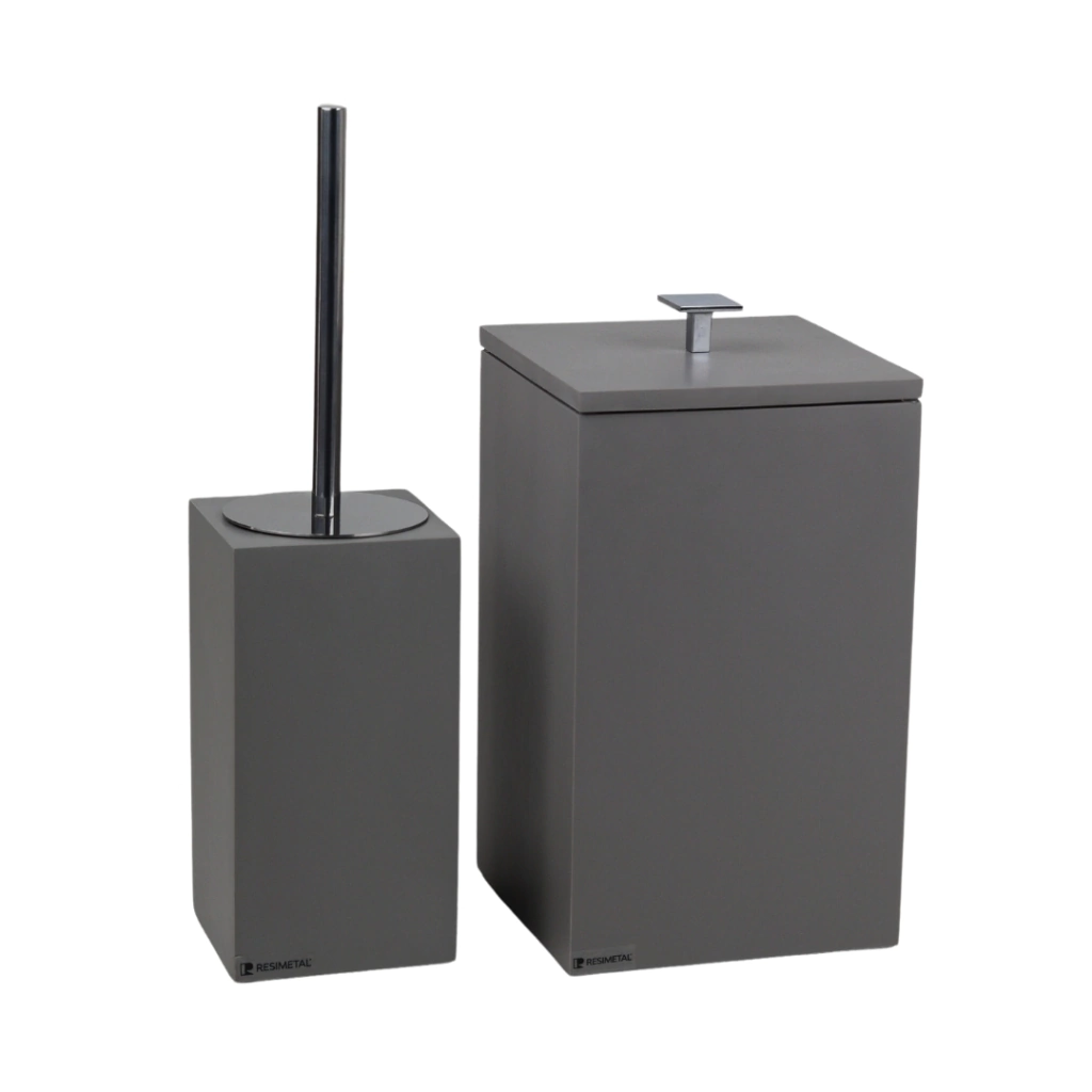 Eleve o estilo e a organização do seu banheiro com este conjunto de lixeira e escova sanitária, fabricados em resina de alta qualidade. A lixeira quadrada, com tampa de fácil abertura, garante discrição e praticidade, enquanto a escova sanitária acompanha um suporte moderno com detalhes em metal cromado, proporcionando durabilidade e resistência à umidade.
